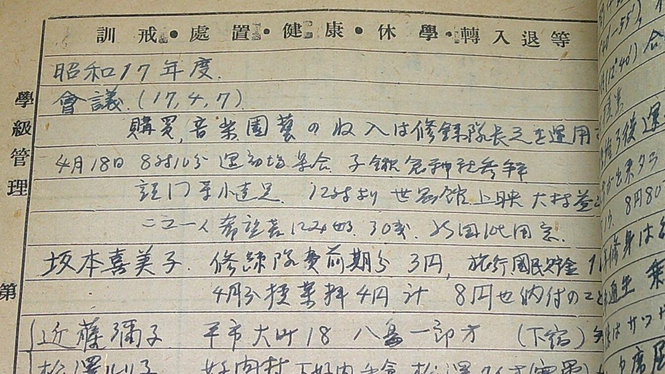 ・昭和17年度の磐城高等女学校で用いられた教務手帳。